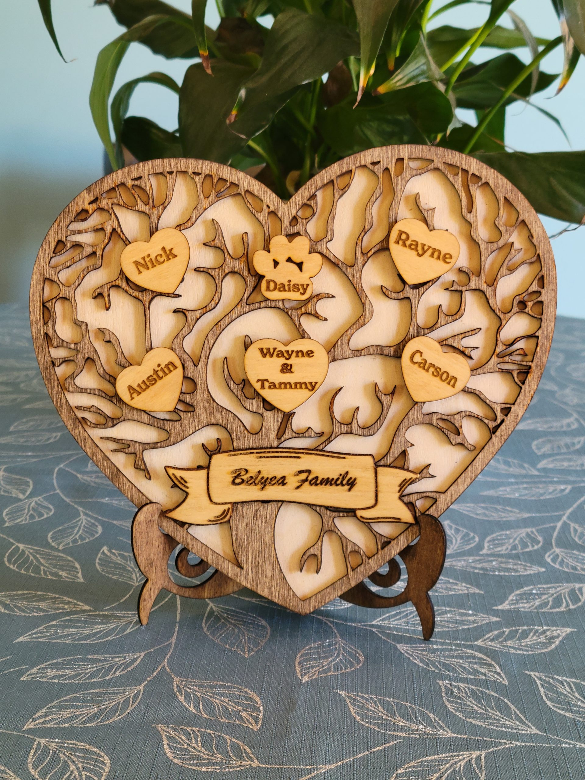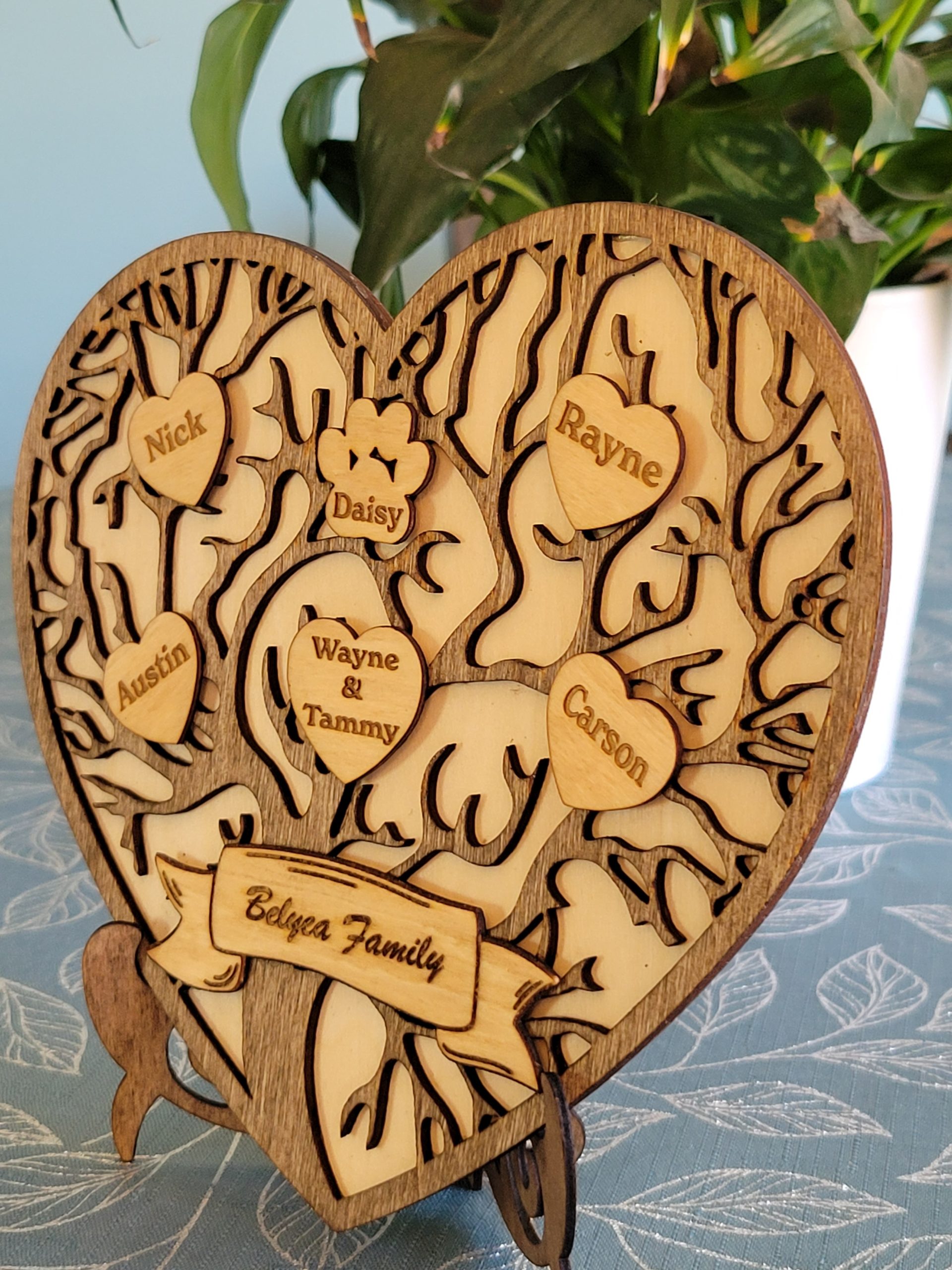 Celebrate family connections with this custom heart family tree sign, designed to represent the people who matter most. Featuring a heart-shaped design personalized with names, this piece is a beautiful way to honour children, grandchildren, or generations of family.